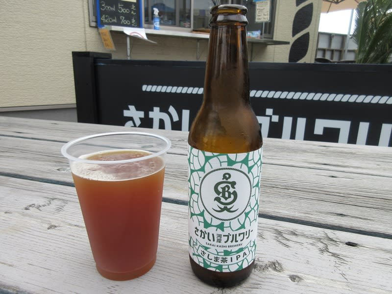 まずは気になっていた「さしま茶IPA」を頂きます。地元産のお茶使用のビールです。アロマから抹茶の香り。飲むとさらに心地よい抹茶の香りが素敵。モルトの旨味はしっかりで、ホップの苦味と抹茶の苦味が心地よくボディを引き締める。抹茶の香りのフィニッシュ。旨い!さしま茶が心地よく香り、お茶の苦味も感じられる素晴らしいお茶エールです。お茶を使ったビールは全国にありますが、これはその中でもピカイチです。