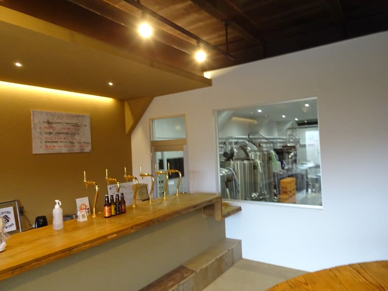 醸造設備を窓越しに望む、素敵なタップルームになっていました。ここで飲みたい!
