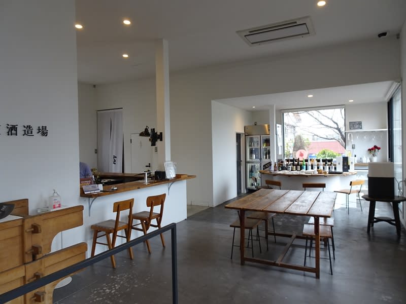 建物の中の様子。中に入ると、白を基調とする素敵な空間。日本酒やビールを販売するギャラリーになっています。