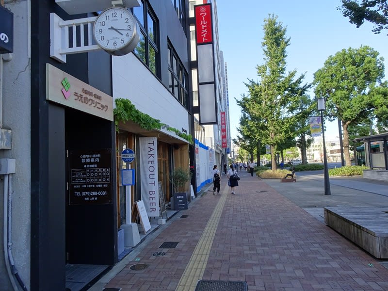 駅前から大手前通りをひたすら姫路城方面へ歩いて行きます。しばらくすると左手にある店舗の幟に「TAKEOUT BEER」の文字を発見。醸造所に到着のようです。