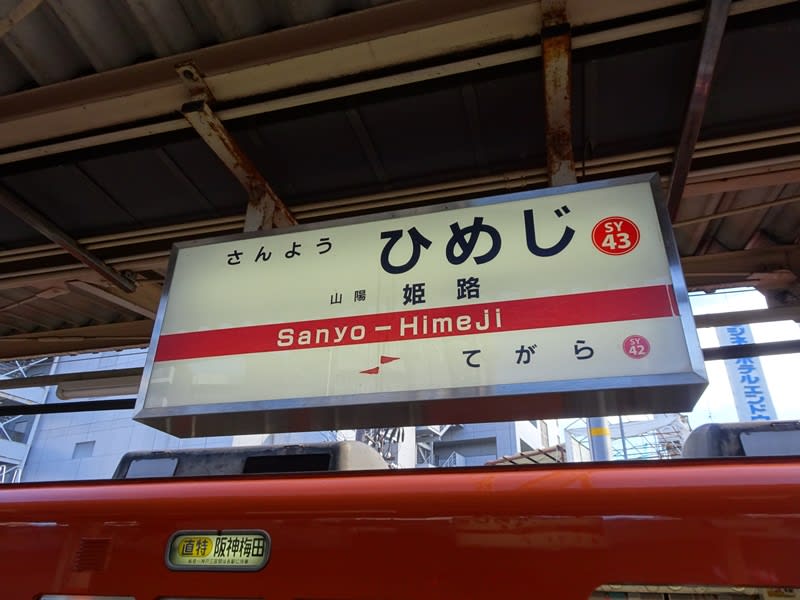 山陽電車で姫路駅に到着。阪神電鉄と直通運転しているので、大阪からも一本で来ることができます。時間を節約したい人にはJRを推奨。