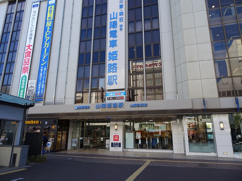 山陽電車の姫路駅です。百貨店と一体になった昔ながらの駅ビルです。
