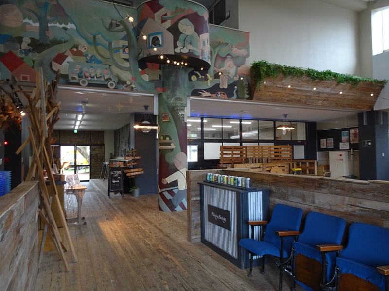 廃校になった小学校を、いちご摘み体験ができる施設等にリノベーションしたそう。廃校といっても比較的新しい校舎です。入口にプライマリーバレルズのボトルショップの看板がありました。