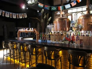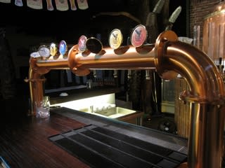 店内のカウンターとビアサーバーです。日本ではあまりみかけない形のサーバーです。カウ