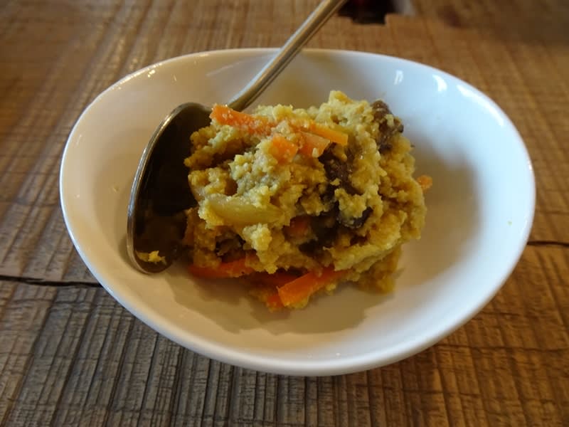 オツマミとして注文したのは「おからのカレー風味」。これ地味なのですが、超美味しかった!野菜がたくさん入っていて、カレーと塩味しっかりで良い。ビールのオツマミに最適。このおからの使い方は目から鱗です。