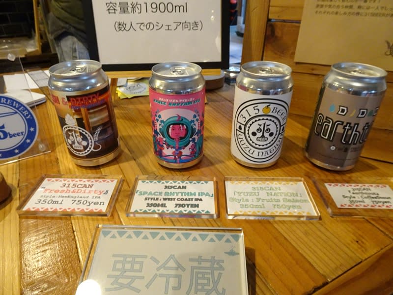 こちらではサーバー出しの量り売りか缶製品の販売のみ。この日は缶製品は4種類でした。