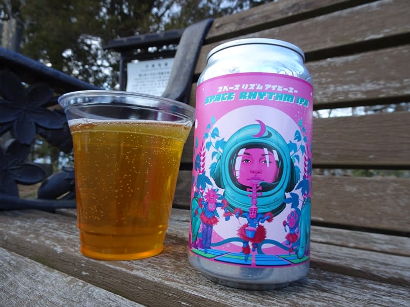 缶製品を購入して、近くの公園で頂きます。最初は「SPACE RHYTHM IPA」。厚みのあるホップの香りとモルトの重厚な香り。モルトの旨味はしっかりながら、しつこくない。ホップの苦味がIPAらしく響く。旨い!重厚なホップの香りと、しっかりボディが特徴のIPAです。