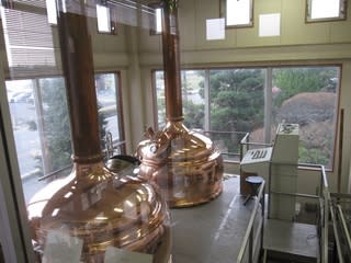 この建物の左側が醸造所の一部になっており、大きな窓から仕込み釜が見えています。