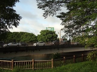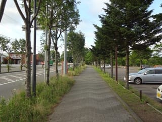 醸造所へをひたすら一本の道を歩いてゆきます。途中右手に緑の多いエリアに来たら、醸造所はもうすぐ。