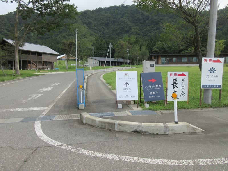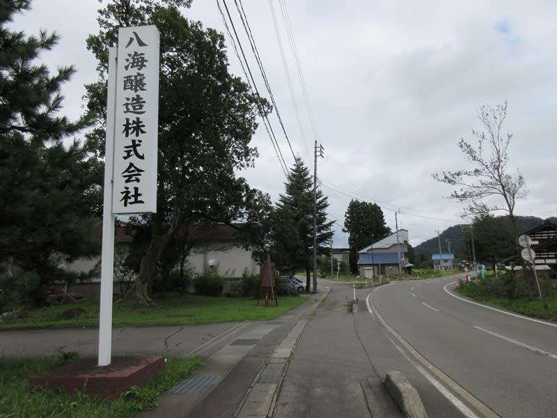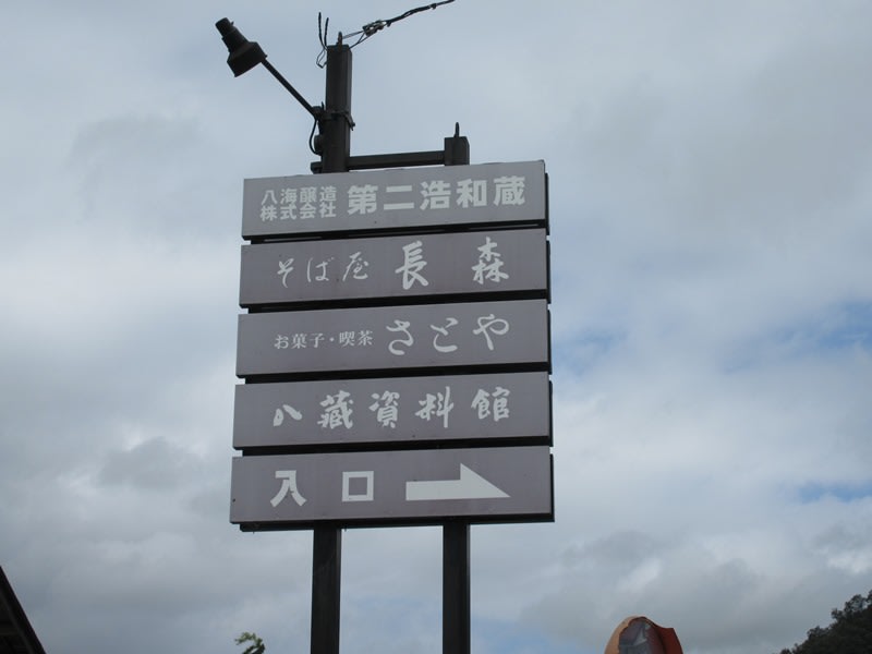 さらに歩いて行くと、ようやく見えてきました。魚沼の里の施設への案内看板が。魚沼の里は八海山関連の醸造所や飲食店などが点在する一帯を指します。その中に目指すビール醸造所もありますので、この案内に従って右折します。