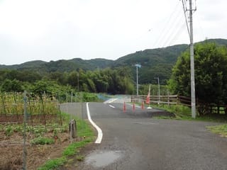しばらく歩くと小さな案内看板がありますので、そこで右折します。