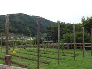こちらで栽培されている農作物の中でも目を引くのはやはりホップでしょう。この時は収穫は終わっていたのでしょうか、毬花は確認できず。