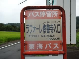 修善寺駅から約10分のバスの乗車。醸造所最寄りのバス停「ラフォーレ修善寺入口」で下車します。