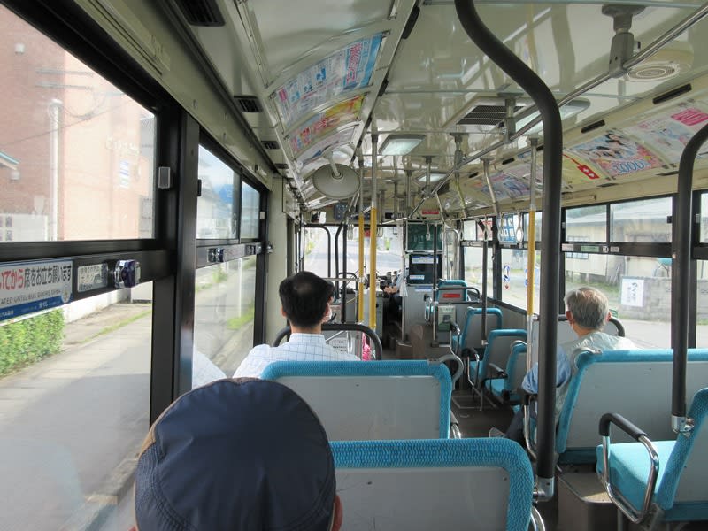 駅前のバスロータリーからバスに乗車し、醸造所方面に向かいます。しばらく走ると市街地の中心部分となり、旅情を感じる風景になります。