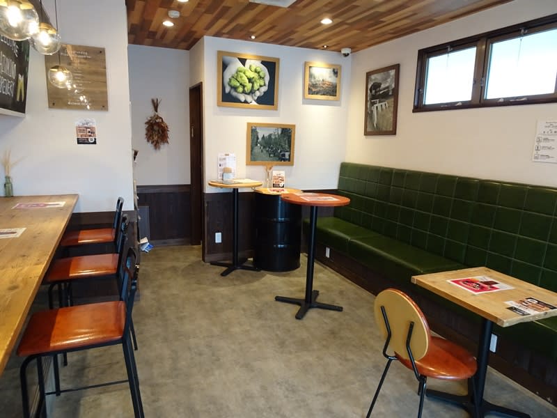店内の様子。席数は少ないですが、心地よさそうな空間です。カウンターからお約束の醸造設備を眺めることができます。仕込みの規模は500Lで、発酵タンクは500L×5基という体制。やや発酵タンク多めですね。