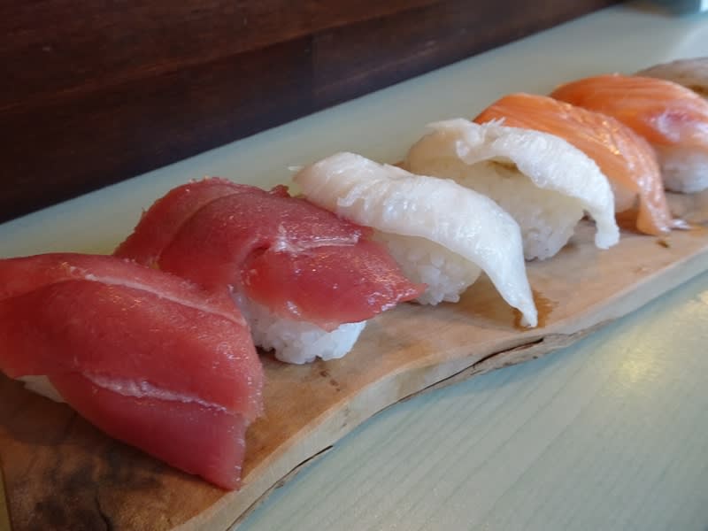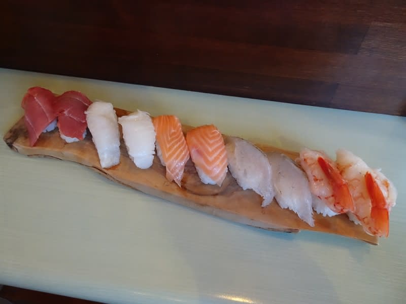 この日はお魚料理専門の日「ととほっか」。特別メニューから、早速お鮨を握ってもらいました。「おまかせ握り10貫」。これで何と990円!まぐろは本まぐろと贅沢で、本まぐろの風味が豊かで美味しい。えんがわは肉厚で、ぶりん、ぶりんとした歯応え。どれもネタが大きく新鮮です。