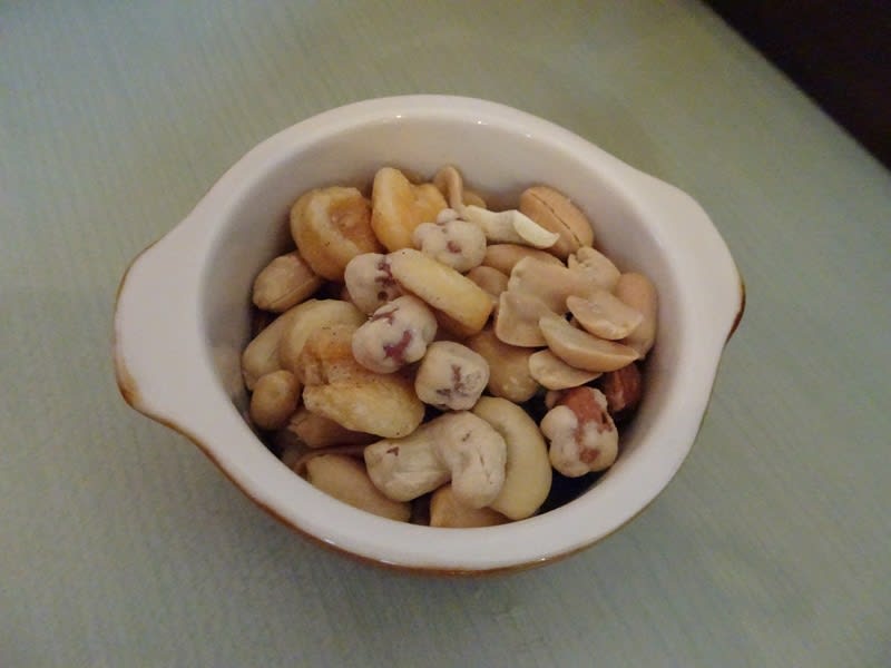 夕食メニューの準備が整うまでの繋ぎとして、ナッツの盛り合わせを注文。