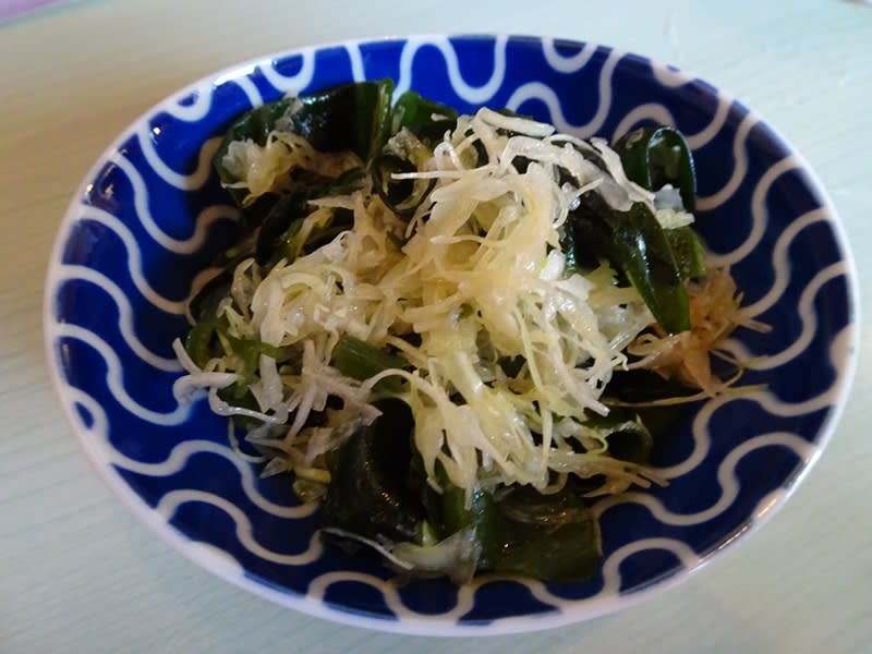 お通しは、ワカメとキャベツのごま油あえ。ごま油の香りが良いね。