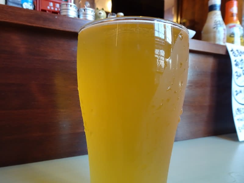 次に頂いたのは「中二の放課後」(セゾン)。何故、「中二の放課後」なのかは、不明。中二らしく、青臭いライチ系のエステル香。モルトの旨味は控え目で、しっかり目の爽やかな酸味が効く。旨い。ライチ系のエステル香と爽やかな酸味が特徴のセゾンです。
