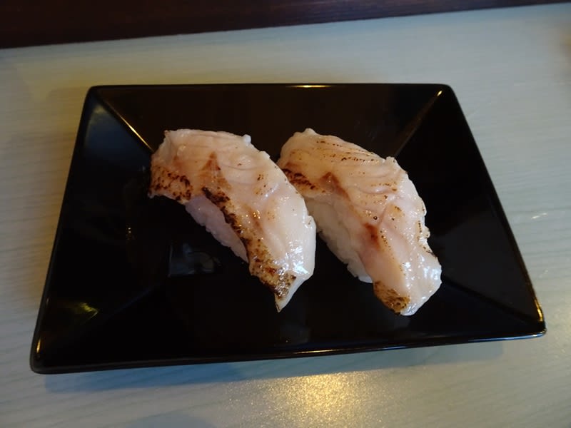お鮨を一皿追加。「のどぐろ湯引き握り」です。一貫200円!湯引きをした上で炙りという手仕事が加えられた一品。上品な脂が美味しいです。