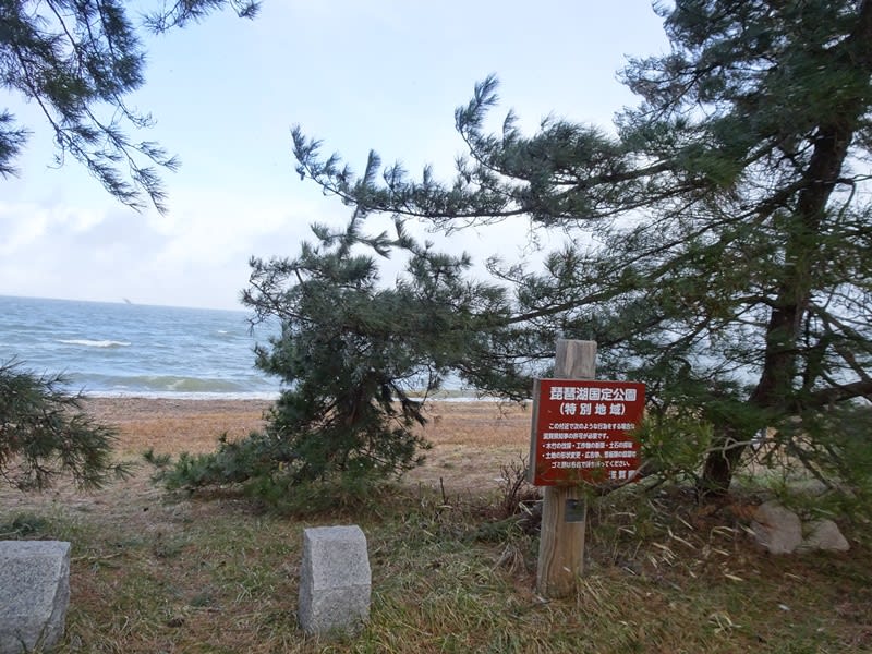 ここからは徒歩で醸造所に向かいます。ここは琵琶湖の湖岸の通り、左手に琵琶湖の水面を望みながら、先に進みます。