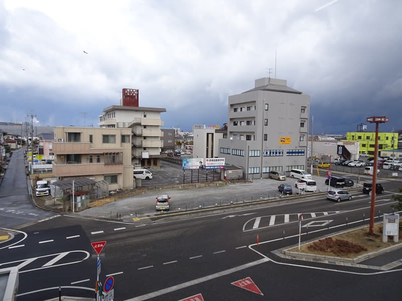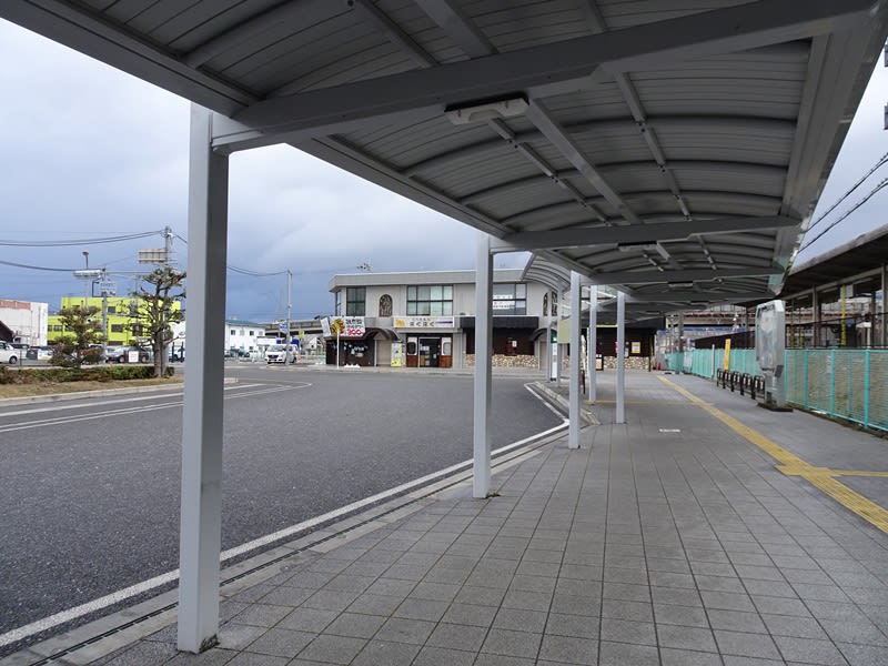 南彦根駅と駅前の様子。郊外の住宅街の駅前といった感じ。