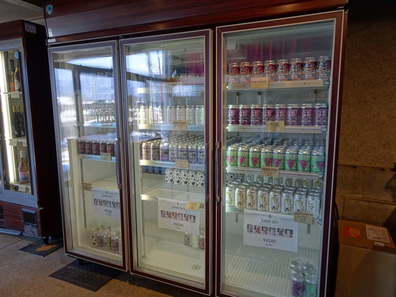 店内ではビールをはじめ、こちらが手掛けるお酒を販売しています。この売店の空間ではケグ出しのビールやこちらの缶ビールを飲むことができます。