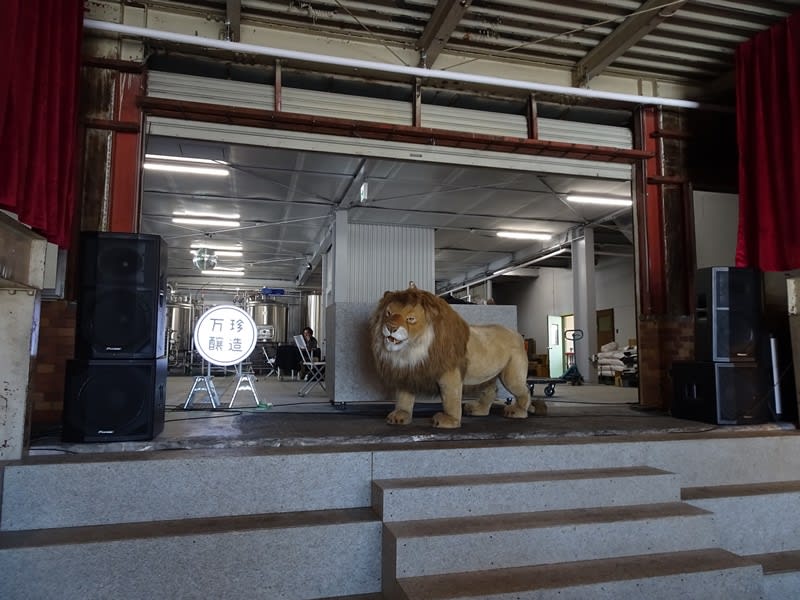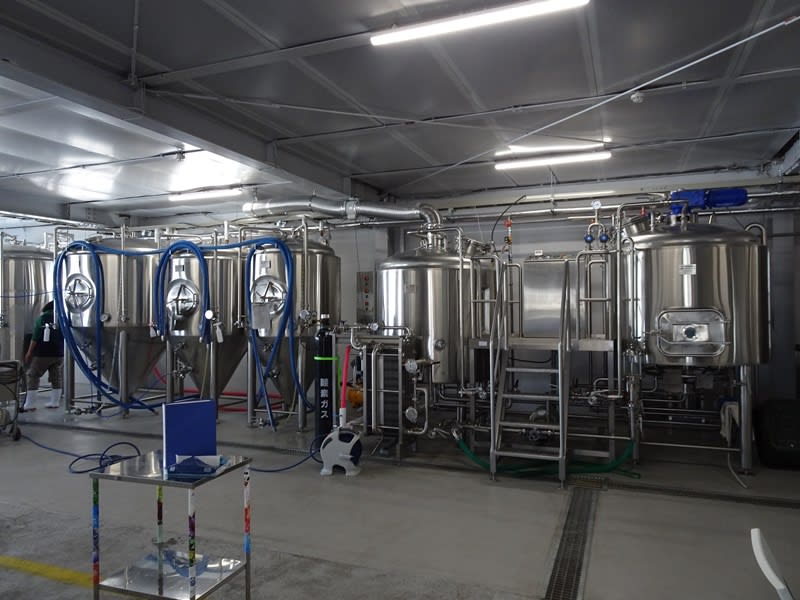 お店の奥が仕切りもなく醸造所になっています。大きなライオンのぬいぐるみが歓迎してくれます。仕込みの規模は1000Lで、発酵タンク2000L×1基、1000L×3基、ブライトタンク2000Lが1基、1000Lが1基という体制。近年の醸造所の中ではかなり大きい部類に入ります。まだまだスペースが開いているので、さらに増強可能ですね。