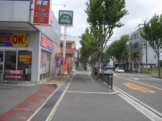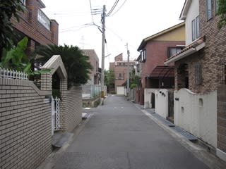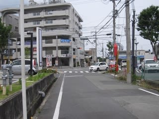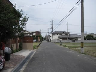 住宅街の細い道を東に歩いて行きます。すると広めの幹線道路に出てきます。