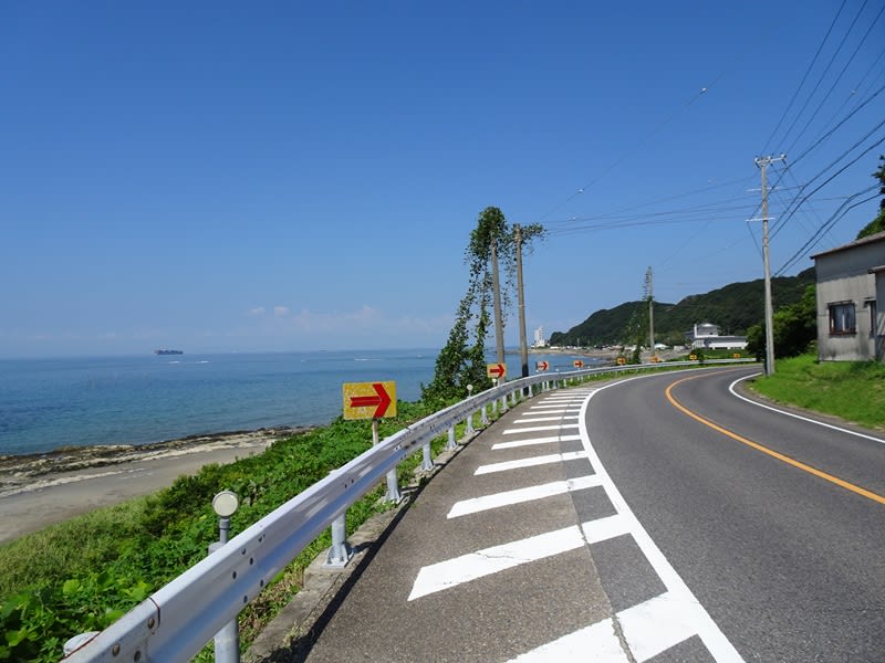 海岸沿いを通る国道247号線出たら北上します。しばらく歩いてゆくと視界が開けてきます。
