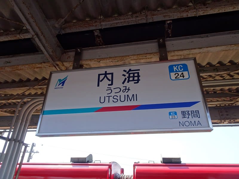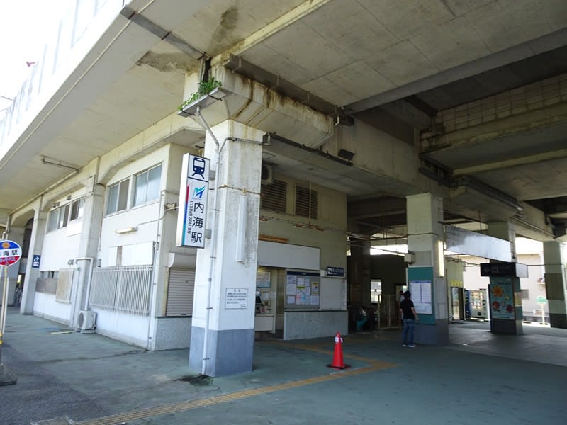 名鉄知多新線の内海駅に到着。内海駅は終着駅で、名古屋からは1時間程度の乗車です。