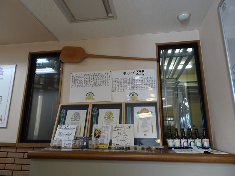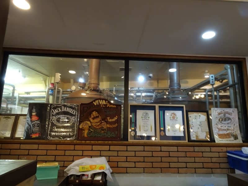 仕込みの設備は売店内からガラス越に確認できます。昔ながらの大きな容量ですね。2KLだと思われます。