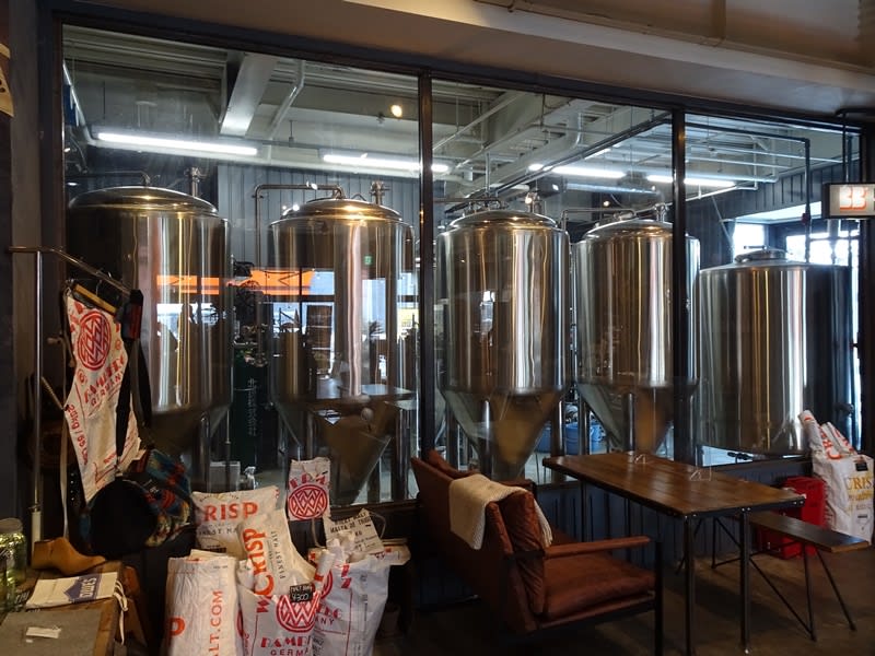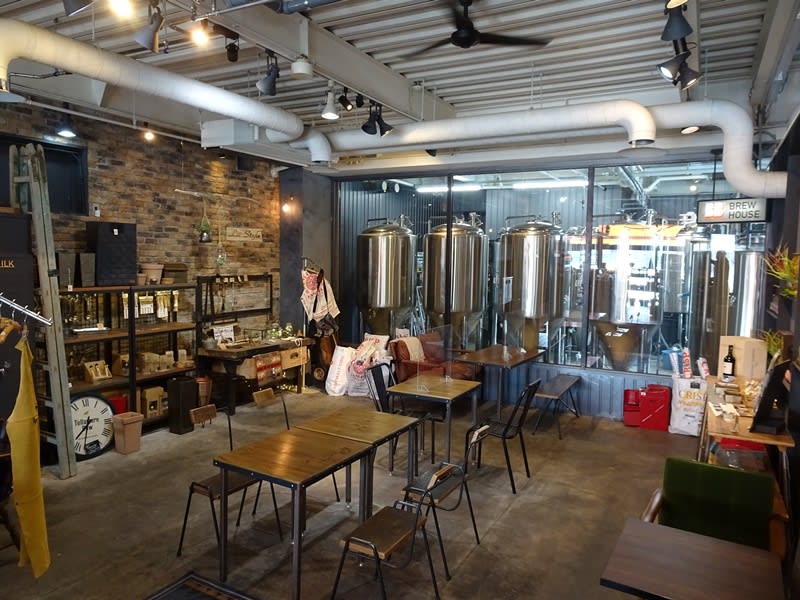 こちらは店内の1階フロアの様子。なかなか渋い感じの店内フロアですね。奥には醸造設備が存在感を放っています。この大きさだと500Lクラスでしょうか。