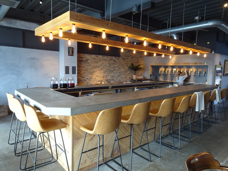 フロア奥の壁には12本のタップがズラリと並んでいます。一つ一つにコルク版でビールの種類が付いているのもセンス良し。