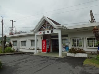 JR市来駅と駅前の様子。ひっそりとした無人駅です。駅前も小さな送迎用のロータリー