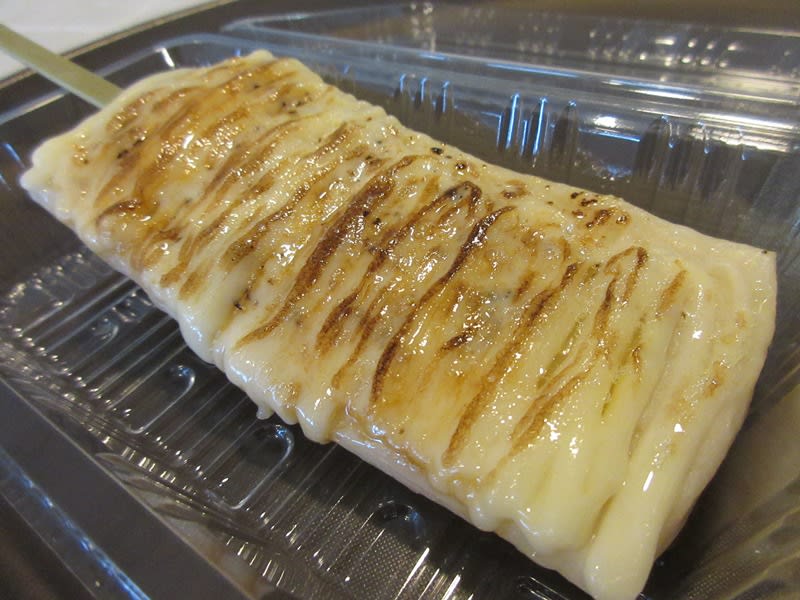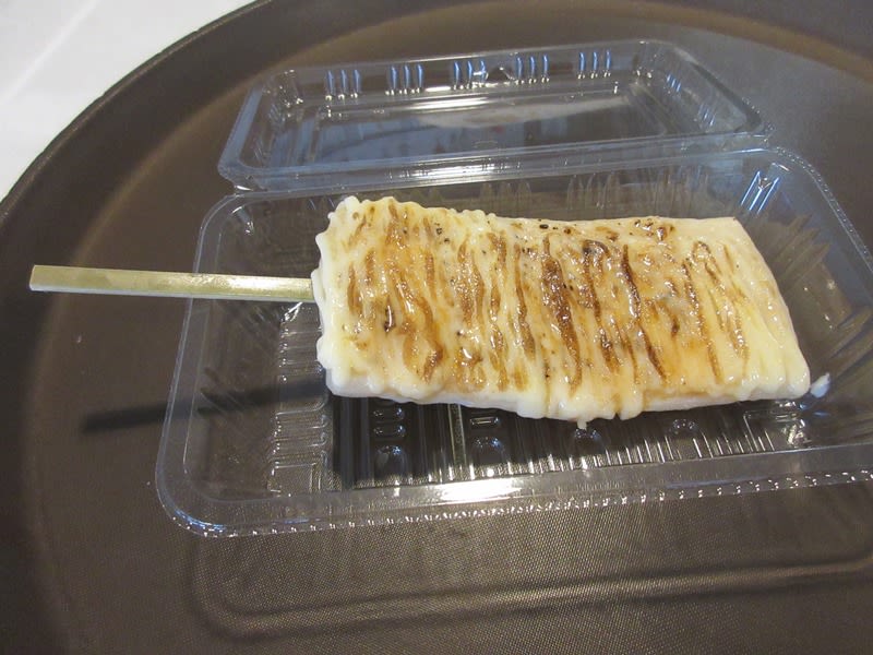 軽食のメニューから選んだのは富山らしい一品、白えびマヨあぶり串です。白えびの香りがしっかりの個性的な練り物です。マヨネーズとの相性良し。