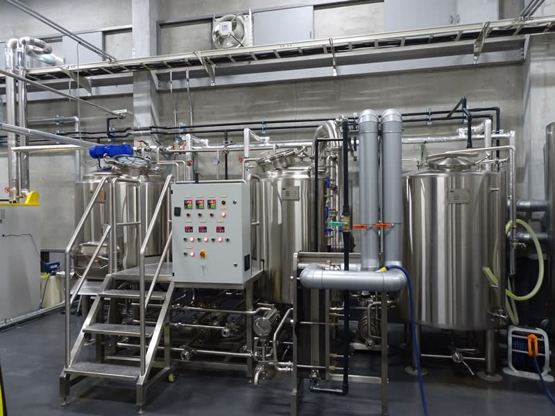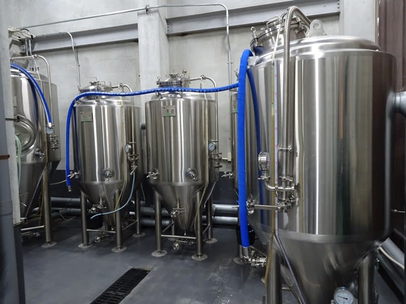 ブルワー様のご厚意で醸造所内を見せていただきました。仕込みの規模は500Lで、発酵タンクは500L×4基と1000Lが1基という体制。最近ダブルバッチ用の発酵タンクを最初から導入する醸造所が多い気がします。
