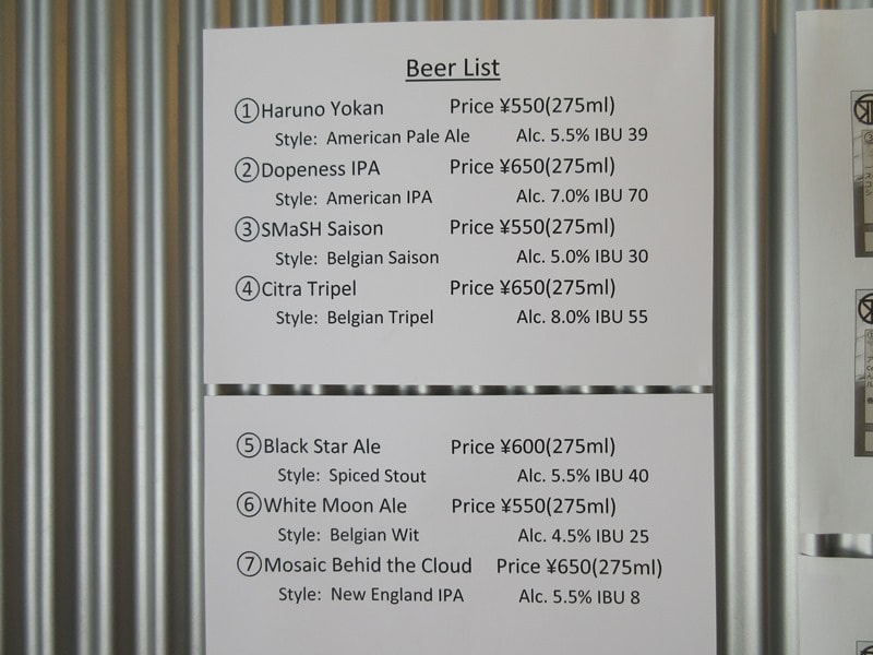 ビールのメニューです。この日は5番が品切れで全6種というラインナップ。