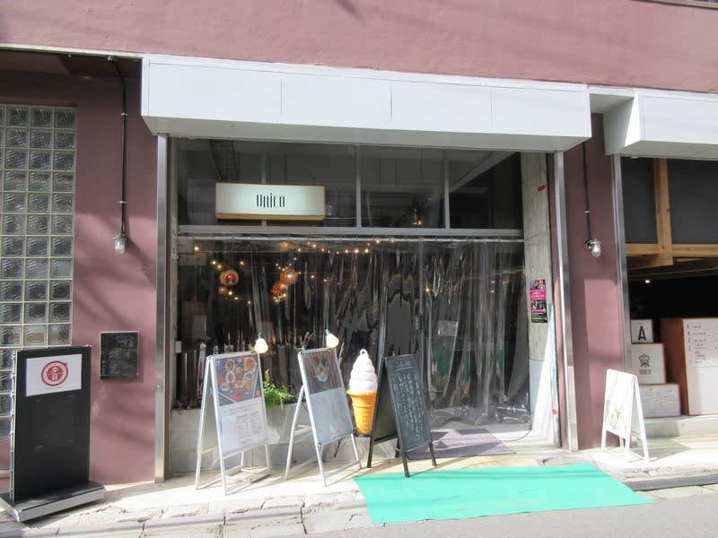 醸造所はunicoという様々なテナントが入るビルの1階にあります。写真左手のガラス部分が醸造所になります。