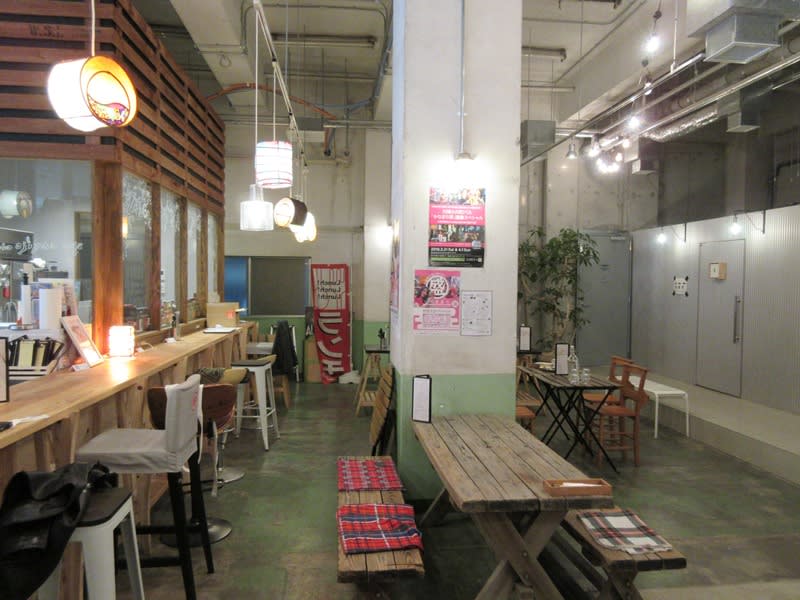 中に入るとすぐ左手が醸造所で、直売所の窓口です。こちらでビールを購入して、直売所の目の前のスペースか、これまた隣接の「スタンド日進」というカフェレストランで飲むことができます。「直売所」って、その潔さがいい感じです。